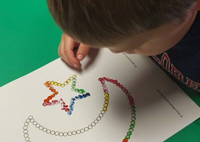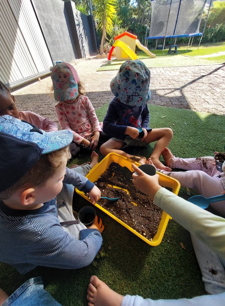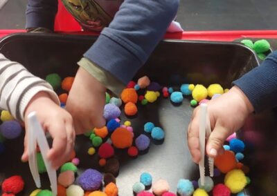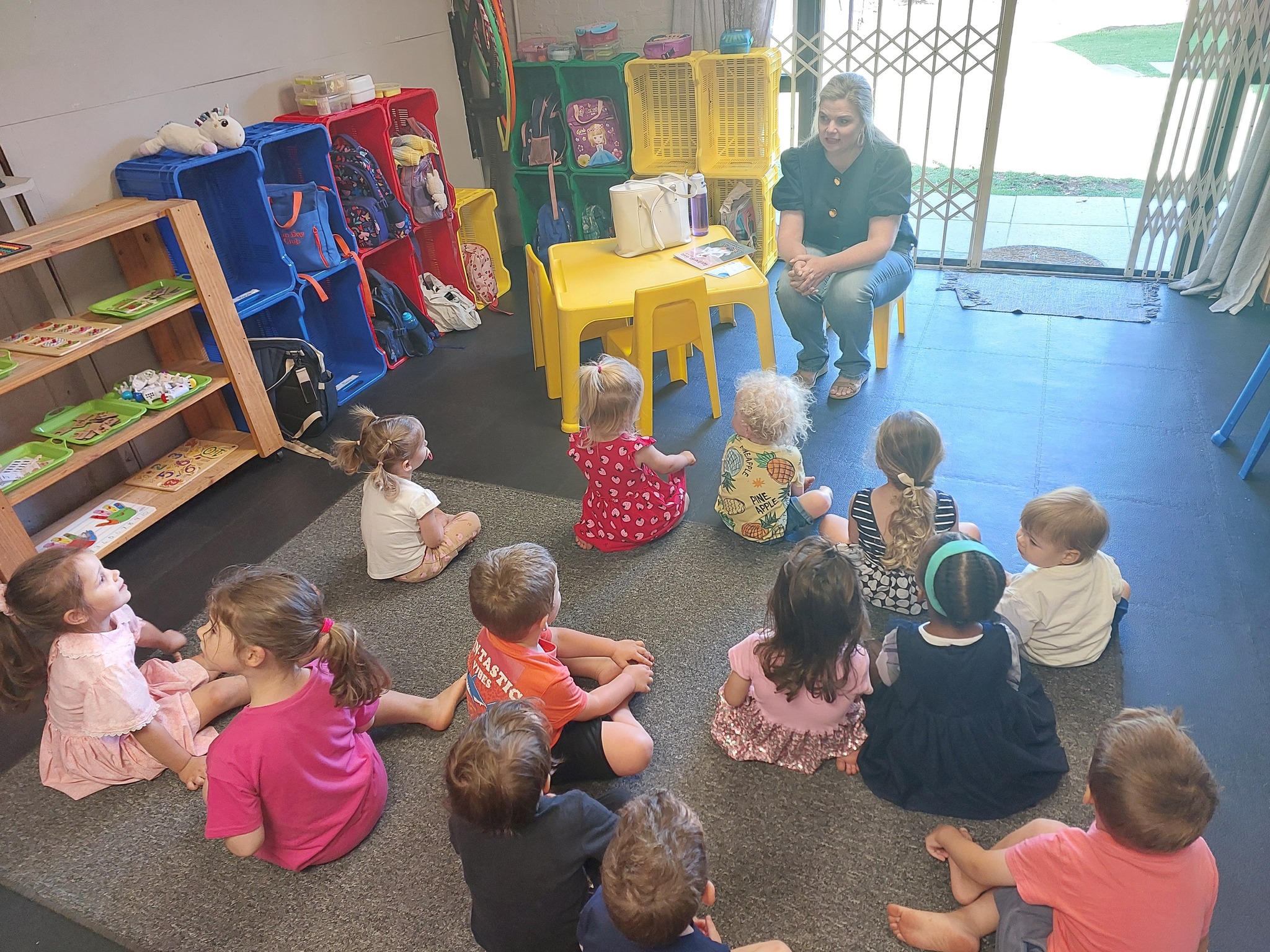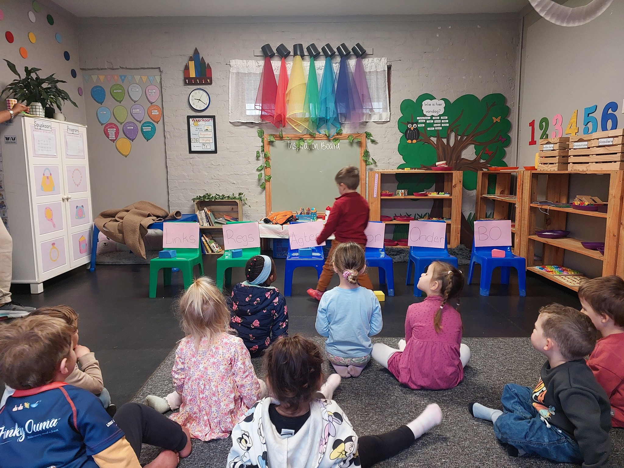 Kinders neem daagliks deel aan ’n verskeidenheid gestruktureerde en vrye leeraktiwiteite, insluitend taal-, wiskunde-, fynmotoriese, sensoriese, kuns- en praktiese vaardighede. Die program volg weeklikse temas met ’n fokus op ’n spesifieke letter/klank, kleur, vorm en nommer. Ons benadering is gedeeltelik gegrond op Montessori-beginsels, waar kinders daagliks vir ’n vasgestelde tyd hul eie aktiwiteite kan kies vanuit verskillende leerareas.